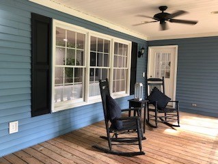 Now what's a farmhouse look and feel without the outdoor space to match? This house comes equipped with a huge covered porch complete with mosquito nets and fans. We've installed new garage doors and a large graveled driveway. Sorry but that's not the outdoors kicker...